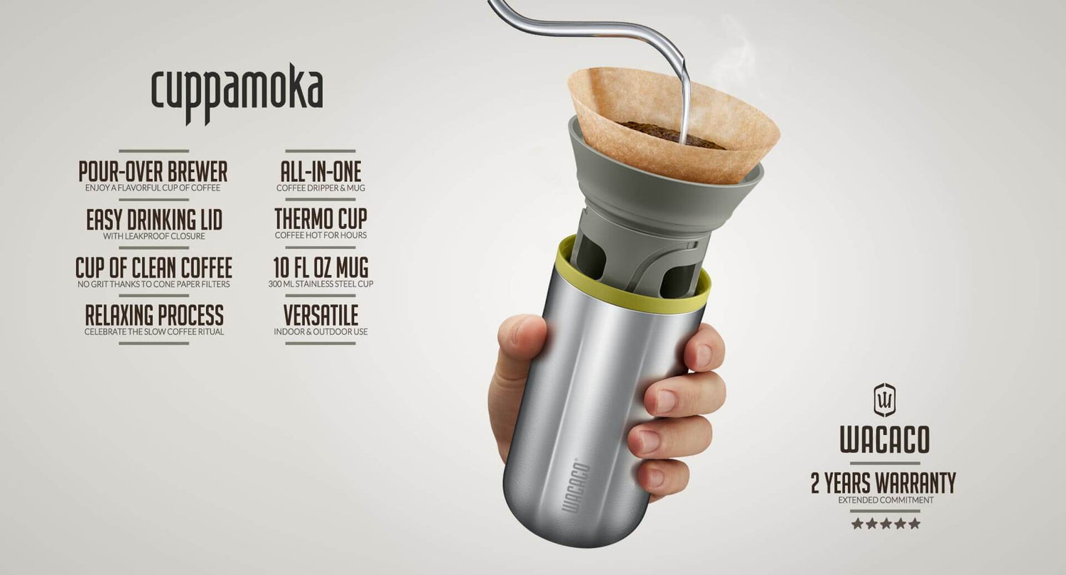 The Cuppamoka, pour-over coffee maker, is compact and lightweight, making it easy to take on the go and enjoy great coffee anywhere.